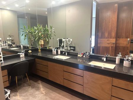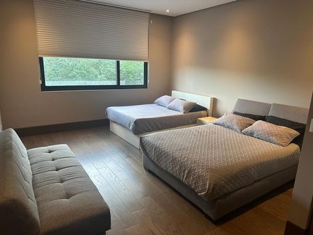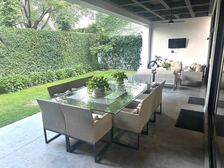 Contemporánea 2 plantas con techos altos, 4 baños, 2 medios baños, cochera para 3 autos. Sala, comedor, 3 recámaras (con opción a 4) con baño y walk-in closets, placas de cuarzo y mármol, family room con baño completo. 3er piso con cuarto de servicio y baño completo con acceso independiente y acceso a techo para mantenimiento. Cocina equipada completa