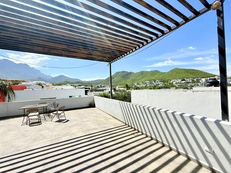 Residencia de tres niveles ubicada en fraccionamiento privado sobre Antiguo Camino al Diente, una de las zonas de alta plusvalía en Carretera Nacional. Su diseño moderno destaca por la abundante iluminación natural y una cómoda distribución que aprovecha al máximo cada espacio. Ideal para quienes buscan confort, seguridad, rodeado de tranquilidad y con accesos rápidos a la ciudad.