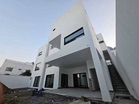 Cochera para 4 autos, sala, comedor, family room, cocina y terraza desayunadora.