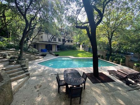 La casa goza de una verdadera paz rodeada de árboles y naturaleza donde tienes completa privacidad y estás a unos minutos de todos los servicios y comercios de la zona de San Agustín, Arboleda y Valle Oriente en San Pedro Garza García.