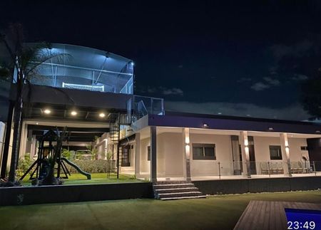Excelente residencia totalmente amueblada, cocina equipada, tres recámaras cada una con baño vestidor, sala de cine, área de juegos infantiles, cancha de futbol, alberca, palapa con cocina exterior, aire acondicionado en todas las áreas. Cuenta con cochera para seis autos. IM