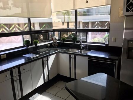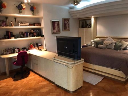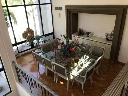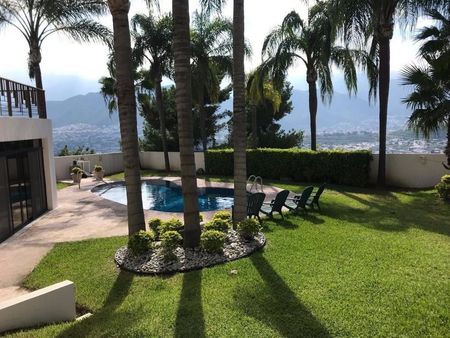 Casa con terreno descendente. Cuenta con 3 recamaras cada una con su baño–vestidor, y la principal ademas tiene jacuzzi y terraza. Sala, Comedor, Cocina con family room, estudio , lavandería y cuarto de servicio independiente.