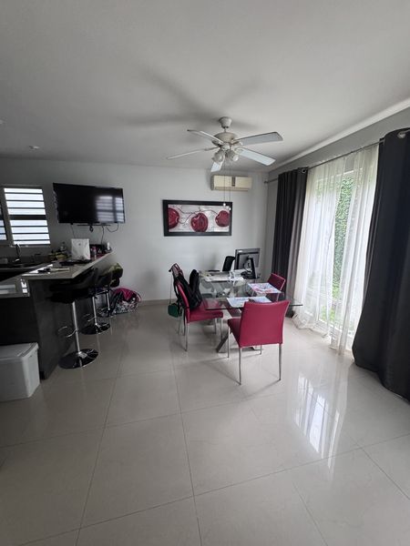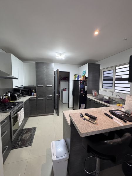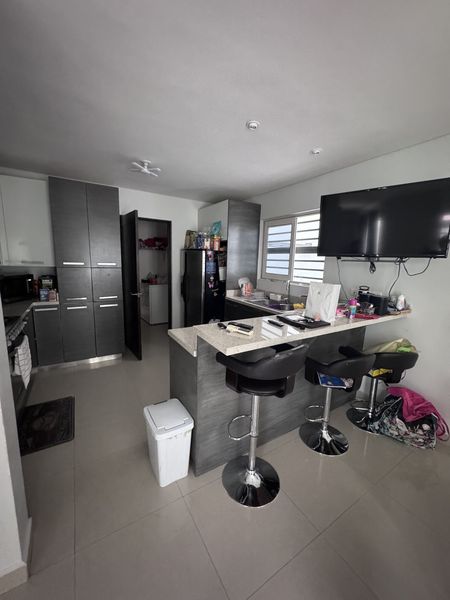 Área de Sala , comedor , cocina integral con barra de granito.