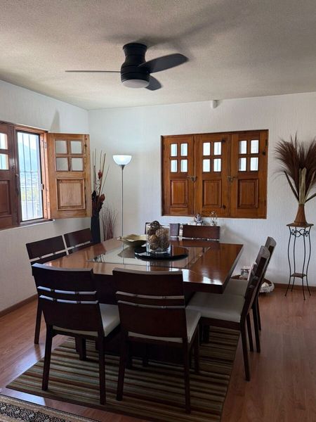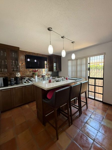 Sótano: Medio baño, bar con tarja y barra y sala de TV, con salida al patio que cuenta con asador y barra.