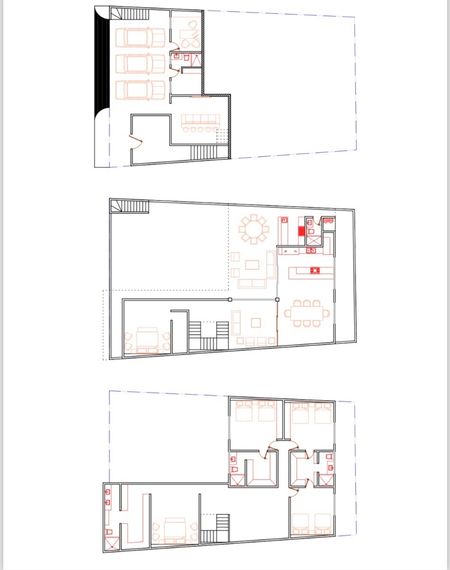 En la PB a nivel de calle se encuentra una cochera para 3 autos, oficina, cuarto de TV o juegos, cuarto de servicio y recibidor principal con baño de visitas. En la 2da planta está la sala comedor amplios con salida al jardín, una hermosa terraza techada que conjunta todo el área social y una gran cocina con family integrado. En ma planta alta tenemos 3 recámaras de muy buen tamaño con baño completo y walk in clóset y una estancia familiar.