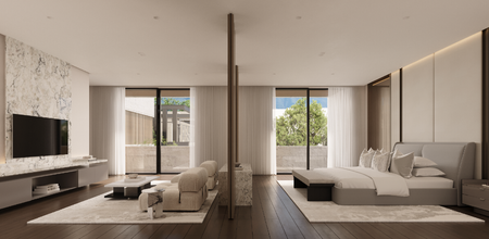 Segunda Planta: 3 recamaras cada una con su baño completo y walk-in closet, estancia familiar y closet de blancos. Recamara principal con balcon.