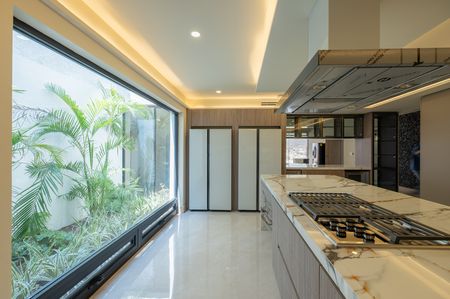 Esta exclusiva residencia ofrece un estilo de vida inigualable en una de las zonas más cotizadas de San Pedro Garza García. Con un terreno plano y techos de doble altura, la propiedad destaca por sus amplios espacios y acabados de lujo.