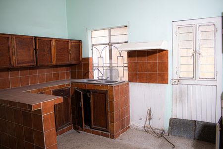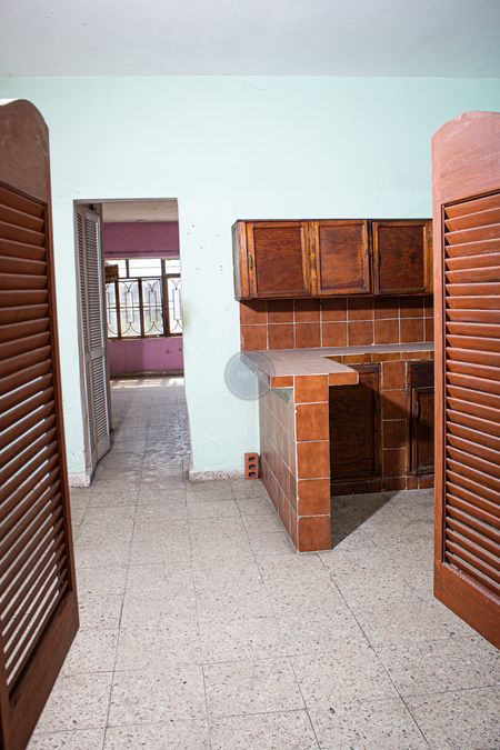 Cocina con barra desayunadora, y espacio para comedor. 2 cuartos y patio amplio.