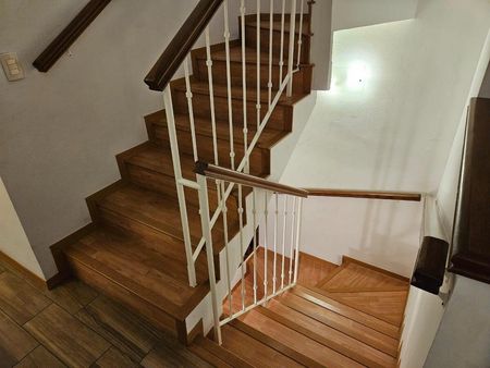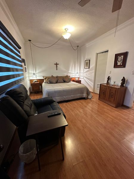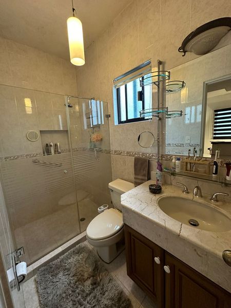 Planta alta: recámara principal con baño y vestidor, 2 recámaras con baño compartido y closets de pared, estancia de TV y calentador de paso. Cuarto de servicio con baño (acceso directo exterior).