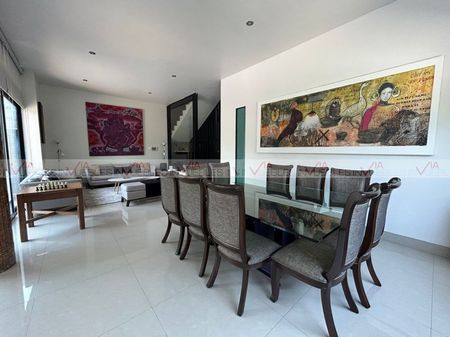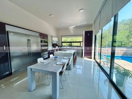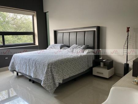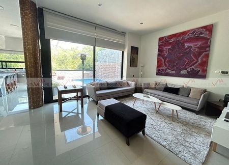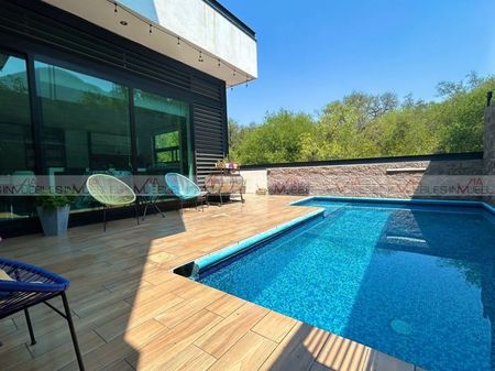 Espectacular residencia ubicada en una de las colonias más exclusivas de carretera nacional, muy cerca de centros comerciales y colegios. Cuenta con 734 m2 de construcción, cochera para 3 autos y sistema de alarma. Áreas amplias bien iluminadas, la cocina cuenta con cubierta de cuarzo y electrodomésticos de alta gama que la hacen funcional y estética. Cuenta con alberca y hermosas vistas a áreas verdes, así como una recámara en planta baja con baño completo. El área privada en el segundo nivel cuenta con tres amplias recámaras con walk-in closet y baño cada una. En ese mismo nivel se encuentra la lavandería y un amplio closet de blancos. Unos escalones más arriba encontramos un cuarto de servicio con baño completo y la salida a una terraza con una de las mejores vistas de la sierra. El sótano es una de las mejores áreas de la casa ya que cuenta con cerca de 200 mts divididos en áreas muy bien diseñadas para darle el uso que se desee, como sala de juegos, estudio, gimnasio, oficina. La propiedad cuenta con sistema hidroneumático, preparación para elevador, 4 minisplits inverter, puerta de seguridad. El fraccionamiento cuenta con vigilancia 24/7, caseta de acceso, palapa, parque con juegos y cancha de basquetbol. Id Gvia: 112681