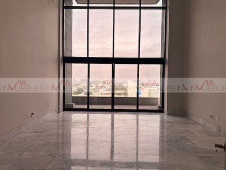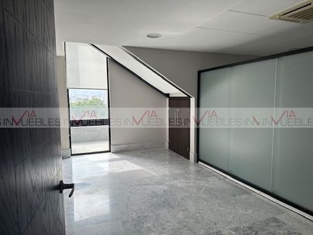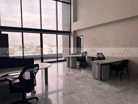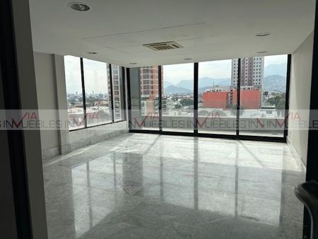 Hermosas oficinas ubicadas en PentHouse de 940 mts2 con vistas privilegiadas en el centro de Monterrey y la hermosa zona del Barrio Antiguo, constan de recepción en la entrada principal, sala de juntas con área social, cocineta con tarja, terraza con vistas panorámicas, techos con doble altura, 5 privados cada uno con su medio baño y terraza con vista panorámica de doble altura, zona común área trabajo (cowork) para aproximadamente 24 escritorios y su ventanal con vista panorámica, almacén, área de archivo, privado y zona que puede ser utilizado para asistente. La renta es de $329,000 pesos más 10% cuota de mantenimiento incluyen 12 cajones techados de estacionamiento. Id Gvia: 111521