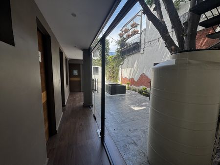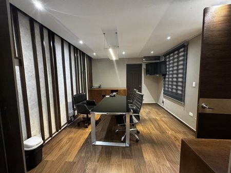 Se renta primer piso, oficinas totalmente amuebladas, con escritorios, sillas, sala de juntas con TV, cuenta con 3 oficinas individuales, 3 medios baños y espacio con 5 cubículos para oficinas. Espacio compartido con la oficina de arriba, recepción, cocina integral y patio.