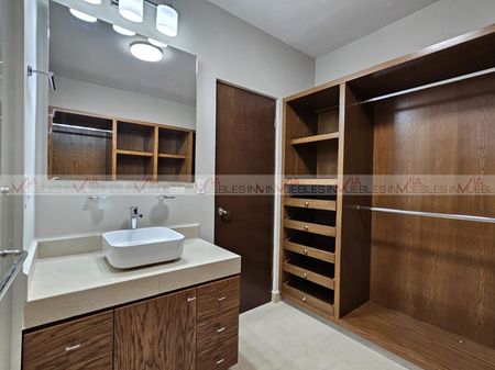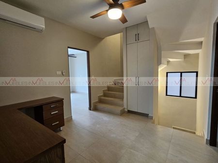 4 recamaras cada una con minisplit, recamara principal con baño vestidor, cocina equipada con estufa, horno y refrigerador, lavandería con lavadora y secadora, estancia, cochera techada para 2 autos.