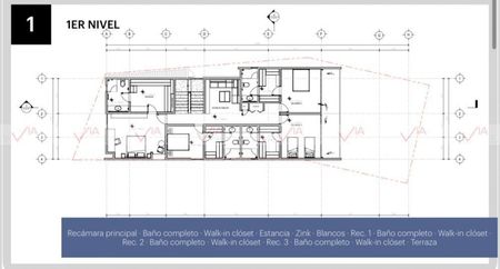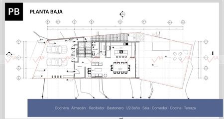 Planta Baja: cochera, almacén, recibidor, bastonero · 1/2 baño, sala, comedor, cocina, terraza.