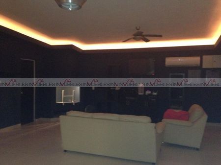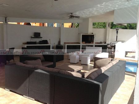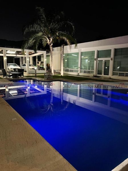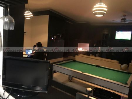 Entrada principal con puertas de cristal y fuente, pisos cerámicos, clima central de 5 tr en área de salas y sala de cine, cuarto de control inteligente (conmutador, cctv, sky), con muebles a la medida del lugar, medio baño, cocina totalmente equipada con isla central, campana extractor, estufa, refrigerador, micro ondas, horno, fregadero 2 tarjas con vista a la alberca y minisplit de 1.5 tr frío/calor; cuarto de juegos con baño Id Gvia: 116428