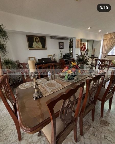 Cuenta con 3 recamaras, 4 baños completos, 2 cajones de estacionamiento, fuente, sonido en el patio, riego automático, jardín, minisplit, cuarto de servicio, terraza, boiler, A/C, gas, luz, agua, cocina equipada, estufa, alarma, bodega y espacio para mascotas.