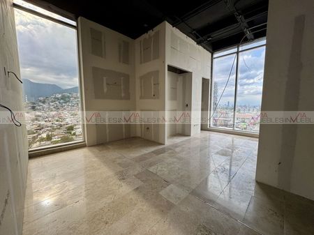 Oficina en renta en excelente ubicación Torre Vetro ubicada sobre Ave. Eugenio Garza Sada en Contry, la torre cuenta con 18 pisos entre locales comerciales y oficinas, 5 salas de juntas como área común para las oficinas, área de comedor y terraza con vista al Cerro de la Silla. Esta oficina de 170 m2 se encuentra en el Piso 15 con excelentes vistas con acabados en pisos de mármol, preparación de 3 medios baños, divisiones de 8 amplios cubículos, sala de juntas, área de coworking, cocineta, recepción, site y 5 cajones de estacionamiento. La oficina ofrece 170 metros de construcción. Tiene guardia seguridad, lo que la convierte en una excelente opción para tu negocio. Id Gvia: 118825