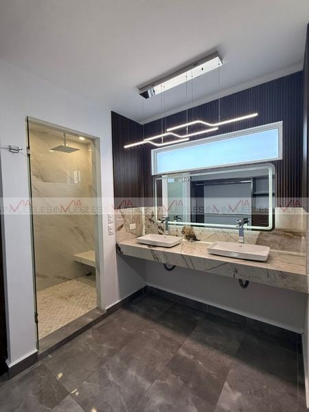 Casa moderna y recién remodelada, con acabados de lujo, alberca y excelente ubicación cerca de Paseo de los Leones, Ruiz Cortines y Lincoln. Distribución: