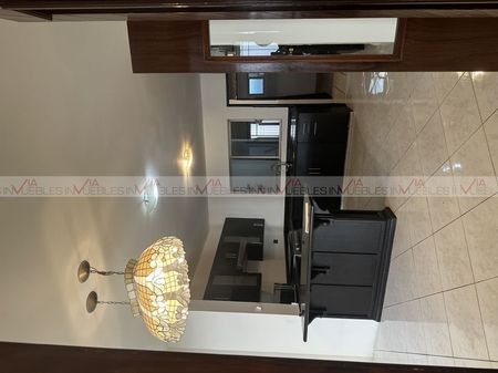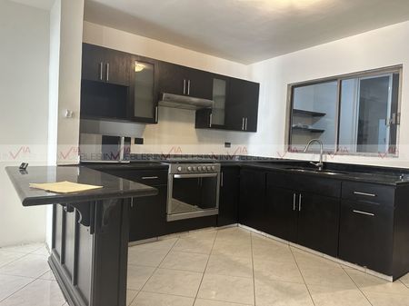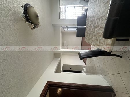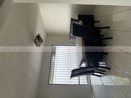 Tiene cochera amplia para dos autos con portón eléctrico y está distribuida en dos plantas. En la planta baja se encuentra un recibidor, escaleras con acceso a una pequeña bodega o cuarto de triques, un área de bar ideal para reuniones, sala y comedor independientes de muy buen tamaño con un pequeño desnivel, y una cocina super amplia equipada con estufa, campana y espacio para antecomedor, además de salida directa al patio. El patio cuenta con un pasillo lateral que conecta con la entrada principal. También en esta planta hay un cuarto de lavado muy amplio con tallador, una bodega con portón eléctrico y un cuarto de servicio con baño completo y entrada independiente.