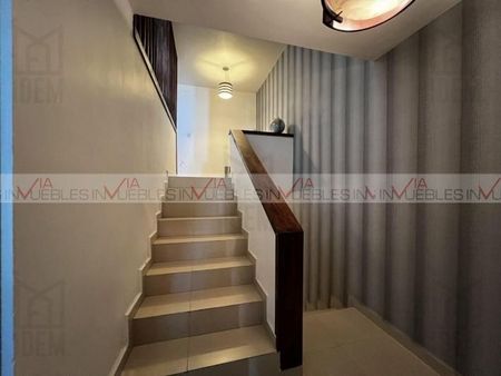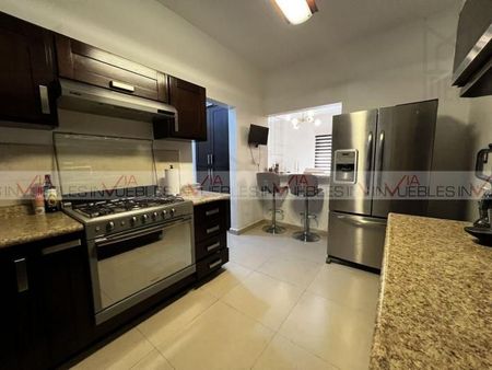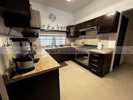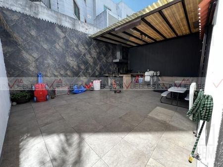Bonita casa en Cumbres Élite noveno Sector, equipada, con acabados de madera, cocina integral, sala, comedor, recámara principal con vestidor y baño completo, 2 recámaras con baño compartido, patio amplio y con área social, barra y asador, pared. Cerca de centros comerciales, Avenidas de fácil acceso. Id Gvia: 118535