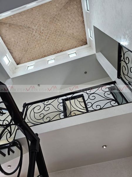consta de, a pie de calle cochera para 2 autos y pequeña bodega, segundo nivel, recibidor y baño de visitas con cubierta de mármol y ovalin de ónix, escalera de forja, pisada de madera y cúpula con iluminación natural, cocina de gran tamaño equipada con cubierta e isla de granito, espacio para antecomedor de 6 personas, amplio cuarto de alacena, salón /comedor independiente.