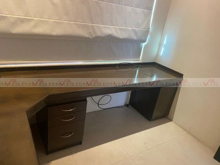 Oficina con mueble de escritorio.