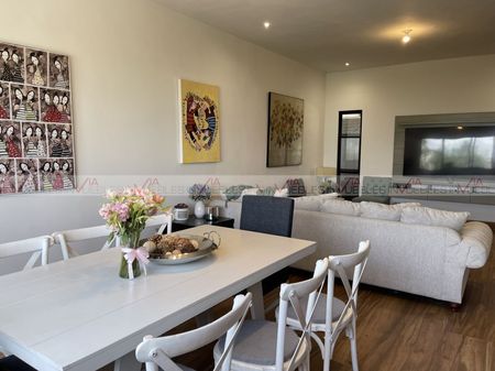 En la planta a nivel de calle se localiza el recibidor, baño de visita, el área social y una linda cocina con concepto abierto. En la planta alta se localizan 3 amplias recámaras, cada una con su baño completo y clóset. La lavandería es muy amplia, y tiene espacio para lavadora y secadora y su tallador.