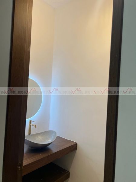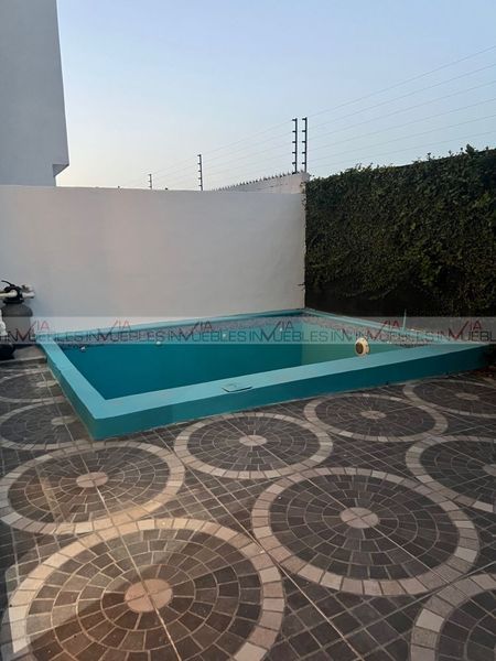 En la primera planta tiene cochera doble techada con cisterna y pasillo lateral que conecta al patio el cual tiene alberca, área social amplia con buena iluminación y climatizada, cocina integral de buen tamaño, medio baño de visitas.