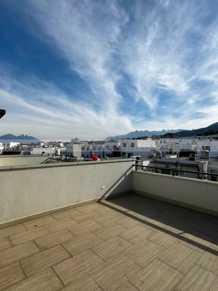 Cuenta con 2 recámaras, cada una con su cama, buró, mueble para ropa, abanico de techo, minisplit, persianas, escritorio y frigobar; comedor y cocineta con tarja, horno microondas, parrilla eléctrica, muebles para almacenaje, baño completo y amplia terraza por la que se accede al departamento.