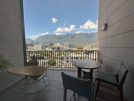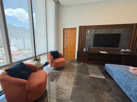 Estrene precioso Departamento Amueblado en el corazón de colonia del Valle con muy buen gusto áreas sociales con vistas a las montañas y recamara principal, con 2 recamaras secundarias, cada una con su baño, estancia de TV, cuarto de servicio con su baño, áreas comunes con piscina y asadores, en Top Roof, incluye impuestos y cuota de mantenimiento