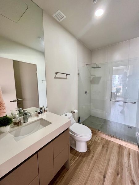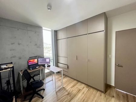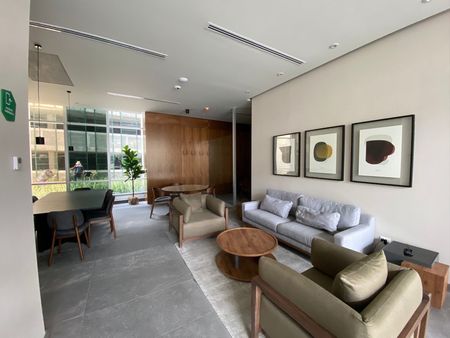 El departamento cuenta con 2 recámaras con closets y persianas, 2 baños completos con cubierta de cuarzo, 2 cajones de estacionamiento, bodega y seguridad con control de acceso 24/7.