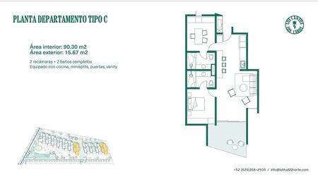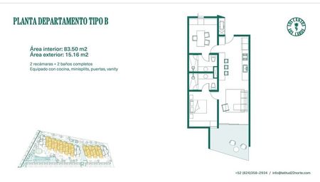 2 recámaras + 2 baños completos