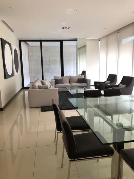 Departamento amueblado de lujo, estilo contemporáneo ubicado en excelente zona de San Pedro. Cuenta con dos recámaras, área social con terraza techada, seguridad, 24 horas, jardines arbolados, tres lugares de estacionamiento. Cuenta con bodega. No incluye mantenimiento. MM