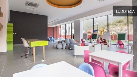 El complejo cuenta con áreas sociales: alberca, salitas amuebladas para eventos, sala y jardín para niños, gym, asadores y salón de fiestas.