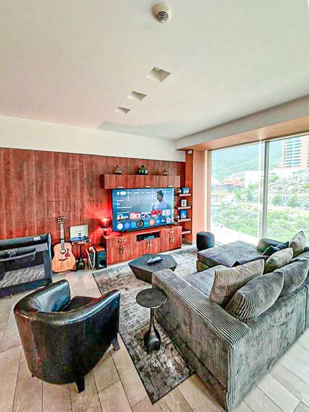 Departamento en renta en Colinas de San Jerónimo, cuenta con dos recámaras y dos baños completos, 101.5 m2 totalmente equipado y con muebles empotrados, sala y comedor, cocina. Ideal para ejecutivo, pareja o familia pequeña. Área de lavandería, baños con canceles y espejos, 2 cajón de estacionamientos. Vista a la montaña. El edificio incluye: Seguridad 24 horas, lobby, alberca con asoleaderos, área de juegos infantiles, Gimnasio, Ludoteca, Salón de reuniones catering, Salón de eventos para 100 personas, estacionamientos para visitas. Excelente ubicación a 5 minutos de San Pedro, salidas rápidas hacia Santa Catarina, Centro, Cumbres etc. AUG. Id 14149