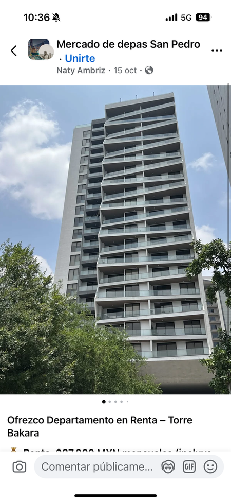 Rento departamento en torre Bakara Dos recámaras dos baños completos , balcón dos estacionamientos , equipado sin amueblar , disponible en diciembre