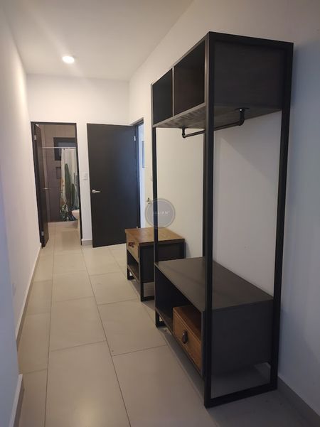 Balcón con hermosa vista al Cerro de la Silla, 1 cajón de estacionamiento techado, minisplit inverter (frío/calor), cortinas de techo a piso, con hermosos ventanales de techo a piso, centro de lavado, boiler, inter phone.