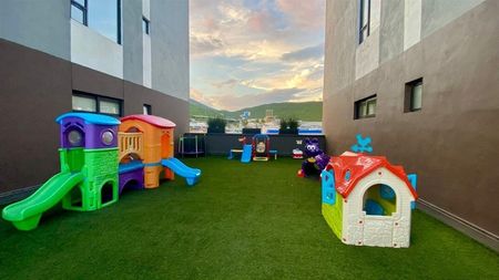 La torre cuenta con seguridad 24/7, tiene muchas amenidades: casa club, gimnasio, alberca, asadores, vita pista, 2 áreas de juegos infantiles divididas por edades, cancha deportiva polivalente (soccer y basket), pet park.