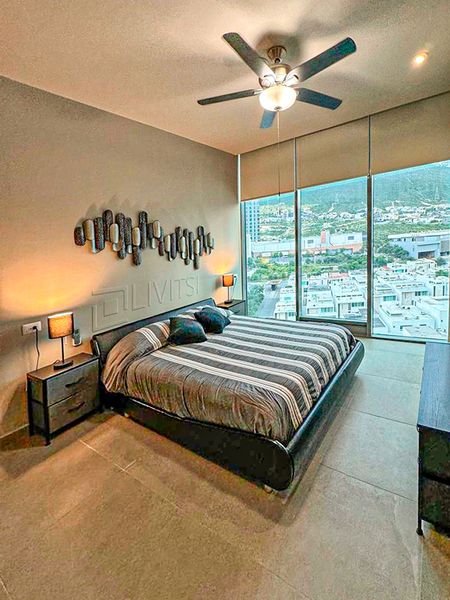 Departamento amueblado en Renta ubicado en Valle Poniente (aun lado de Vía Cordillera) de 73 m2. Se encuentra en piso 8 cuenta con cocina integral de 1 recamara 1 baño completo 2 mini Split frio/calor 2 Smart tv, 2 abanicos, 1 closet, persianas para ventanas panorámicas con cristal douvent, balcón con vista panorámica. El edificio cuenta con alberca, asadores, gym, sala de cine centro de lavado, salón para eventos, estacionamiento techado, seguridad 24/7 Requisito contrato mínimo de 1 año, 2 meses de depósito y la renta, Póliza jurídica y seguro de RC para daños a terceros para el depto. La renta incluye cuota de mtto, luz agua e internet, 1 cajón de estacionamiento. Renta $35 mil (si requieren factura es más IVA). OM Id 13567 / 18902