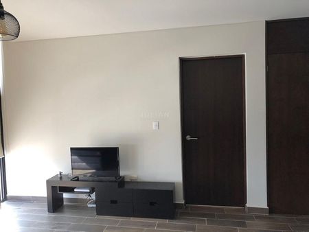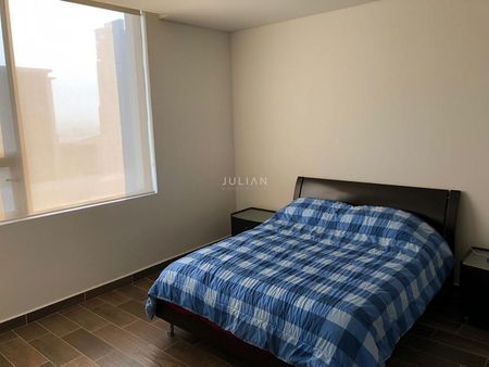 Departamento Amueblado en Renta en Torre Parc en Octavo Piso, 1 Recamara, Cocina y Area de Sala separada de la Recamara no es Loft, Area de Lavanderia, Equipado con dos Minisplits Frio/Calor,Refrigerador, Lavadora, TV. Un lugar de estacionamiento en Torre con Seguridad 24/7 y con Amenidades. Pet Friendly