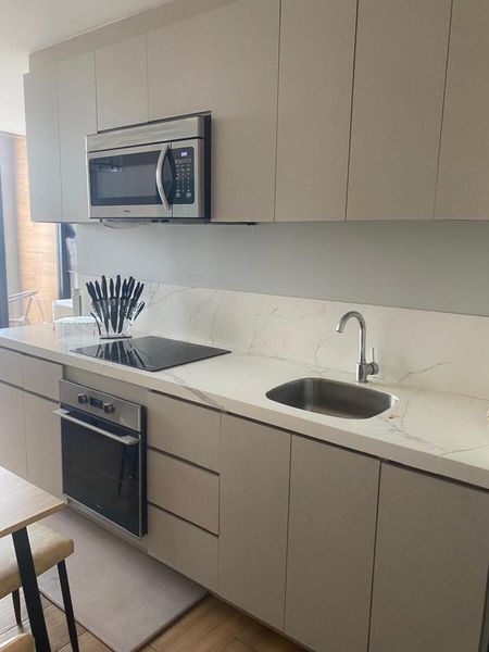 con baño completo, cocina equipada, lava secadora, refrigerador.