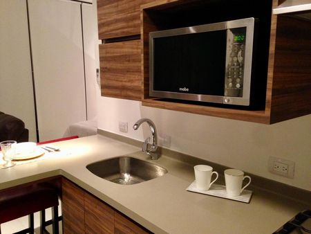 Departamento de 50m2, estilo loft, piso 10, balcón con vista a la Huasteca, totalmente amueblado. Cuenta con cama queen size, lavandería con centro de lavado, barra desayunador para 3 bancos altos, refrigerador, clima de 2 tons, baño completo, cocina con parrilla eléctrica y microondas, closet amplio con cajoneras, cómodo sofá y TV.