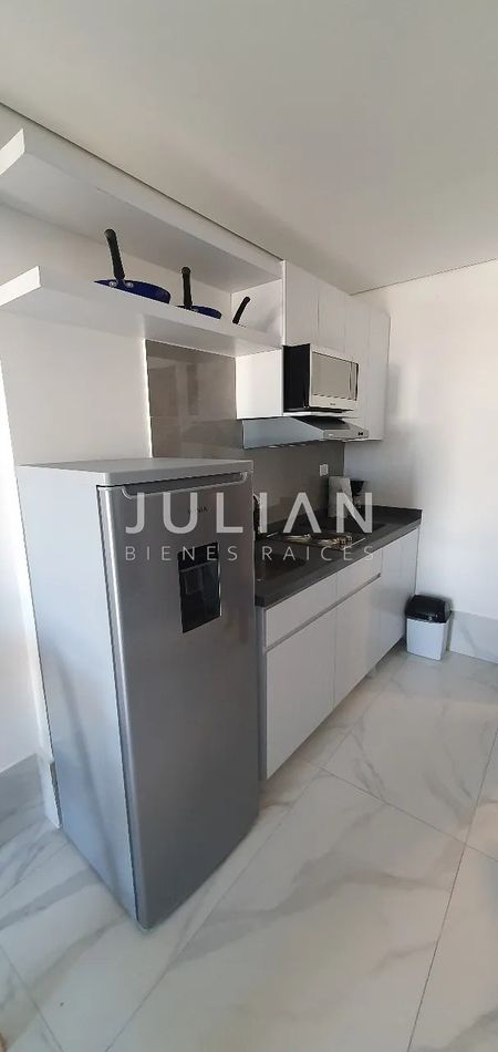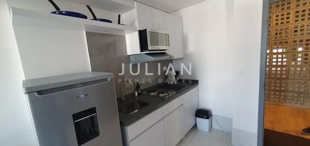 Departamento en Venta para inversionistas en Semillero la Purisima, en el quinto piso, Tipo Loft recámara, clóset, TV, baño completo, cocina integral con estufa, refrigerador, comedor, y un sofa, listo para rentar.
