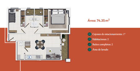 (Terraza: 16.98 m2 y Área de construcción: 66.3 m2)