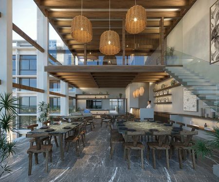 Cuenta con 83 unidades distribuidas en 9 niveles, ofreciendo tipologías desde 2 hasta 4 recámaras, algunas con terraza extendida, rooftop o alberca privada (swim up).