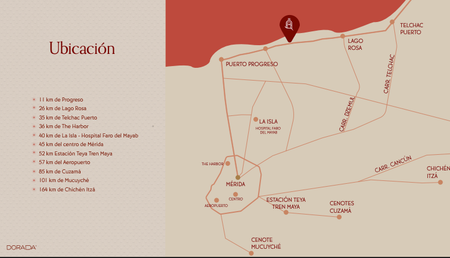 DORADA es un desarrollo de departamentos en preventa ubicado en Chicxulub Puerto, a solo 5 minutos del muelle de Progreso y 20 minutos de Mérida.
