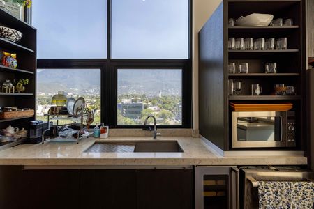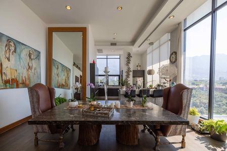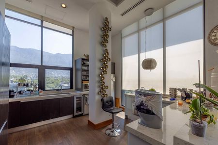 La entrada al departamento es por elevador directo al piso, entrando a un recibidor, sala y comedor con balcón con ventanales de piso a techo que llenan de luz cada rincón. La cocina es abierta con vistas panorámicas a la Sierra Madre desde todas las areas. Todos los ventanales de las areas sociales son de piso a techo.