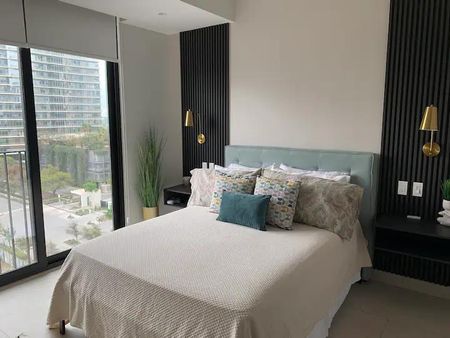 Muy buena distribución, con cama kingsize, clóset de buen tamaño, cocina equipada con estufa, refrigerador y centro de lavado