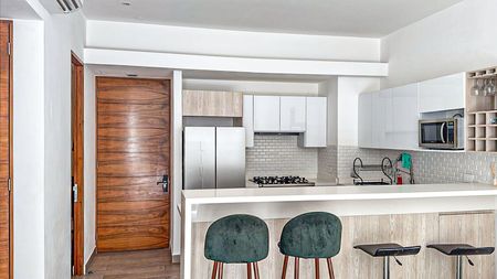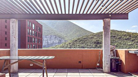 Departamento totalmente equipado para ejecutivo(a) o inversionista 65.52 m2 + 51.045 m2 de rooftop para un total de: 116.526 m2 con vista hacia la montaña, totalmente equipado, sala y comedor, cocina, centro de lavado, baño con cancel y espejo. 1 cajón de estacionamiento. El edificio incluye: Seguridad 24 horas, lobby, 3 asadores, gym, salas de trabajo o reuniones, salón de eventos para 100 personas, Alberca en el piso 8 con increíbles vistas y caldera para el agua, área para mascotas, parque privado, ludoteca, control de accesos con APP. Excelente ubicación a 5 minutos de San Pedro y 15 minutos de la carretera saltillo y salidas rápidas a diferentes partes de la ciudad. AUG Id 14218