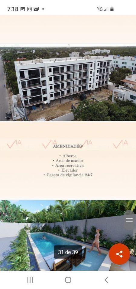 Cuentan con elevador, caseta de Vigilancia 24/7, área de asador y alberca.